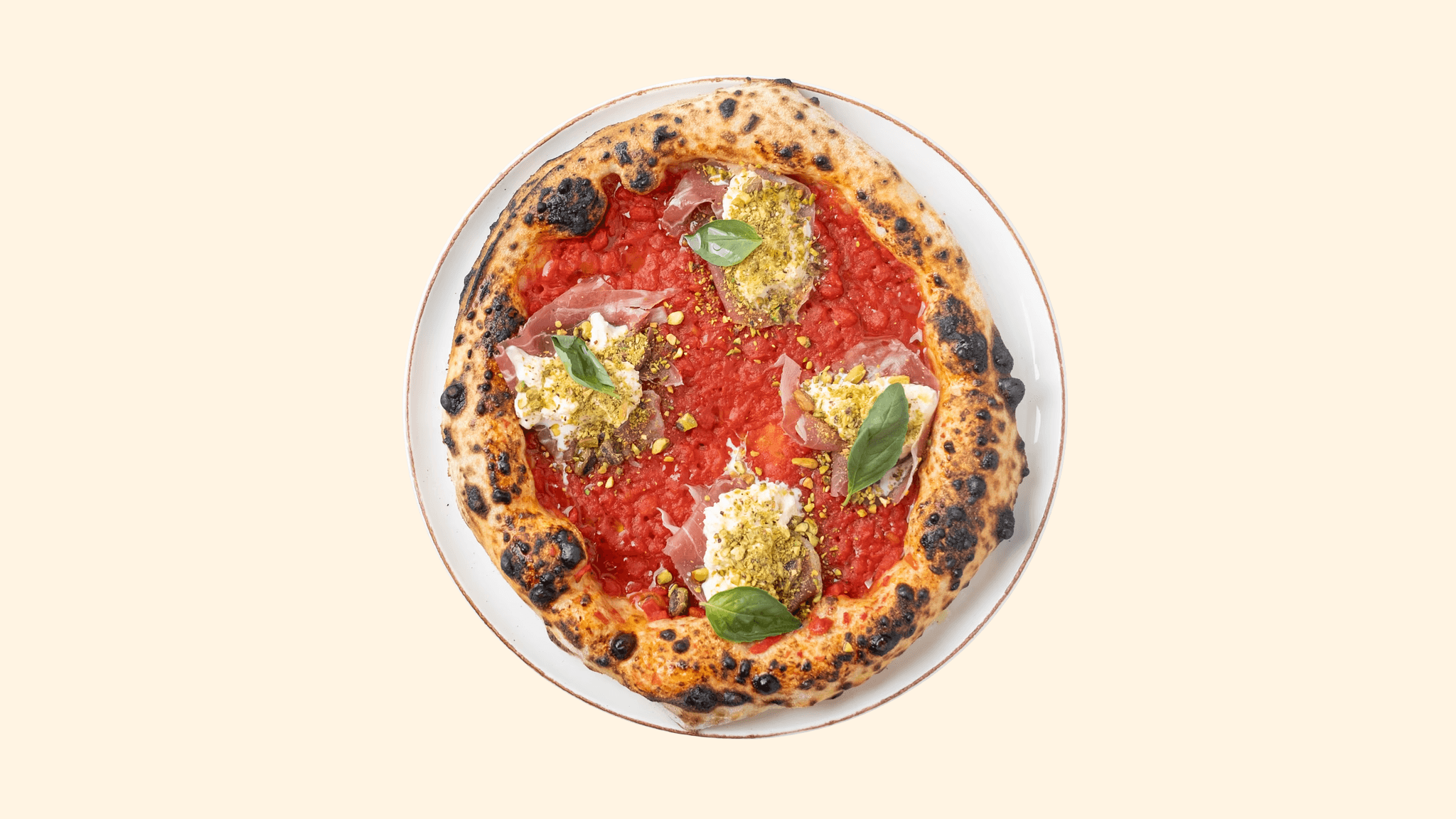 San Marzano Tomato - Prosciutto di Parma Pistachio - Burrata Stracciatella - Basil